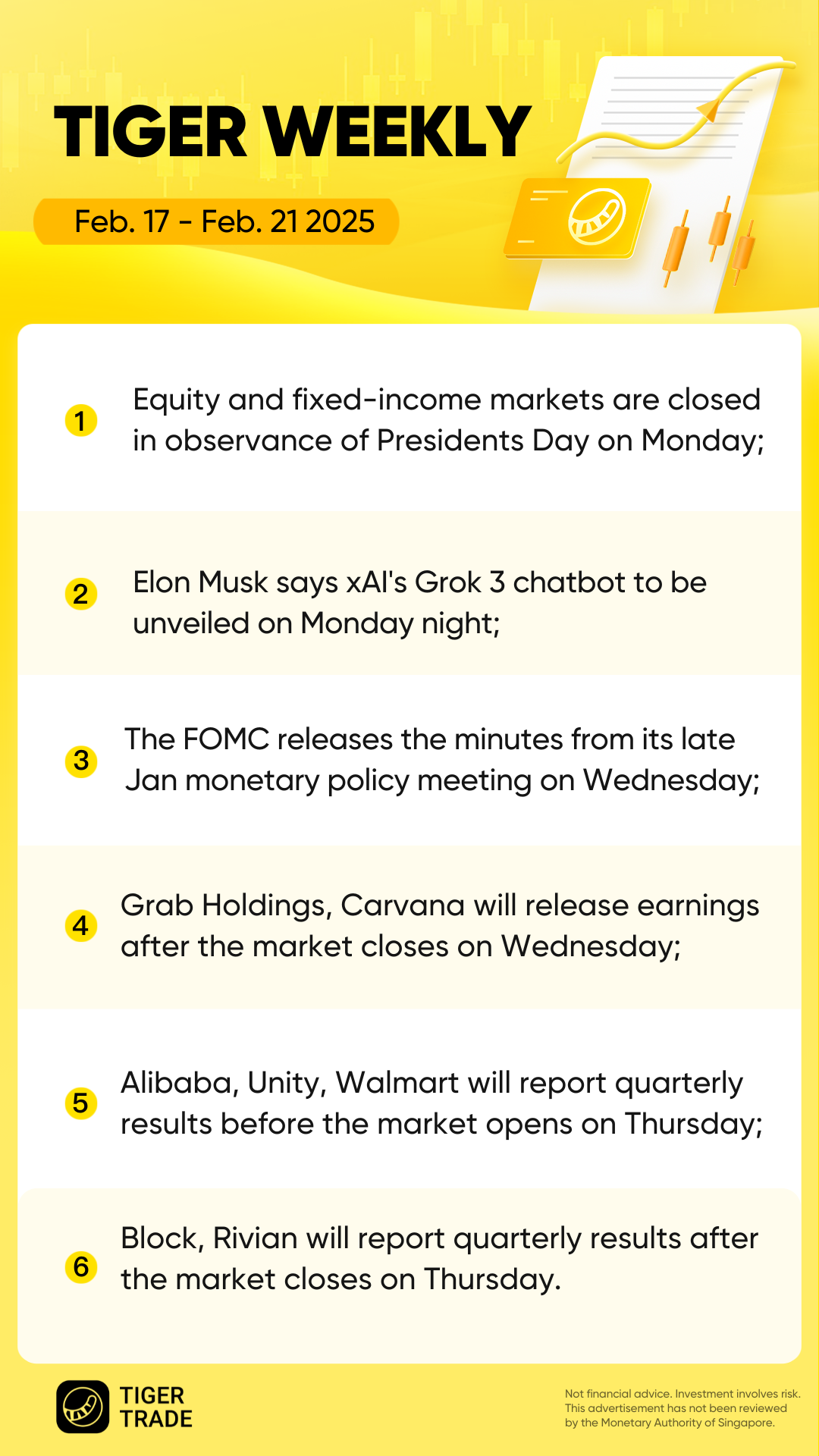 - Market Closure: U.S. markets will be closed on Monday for Presidents Day.