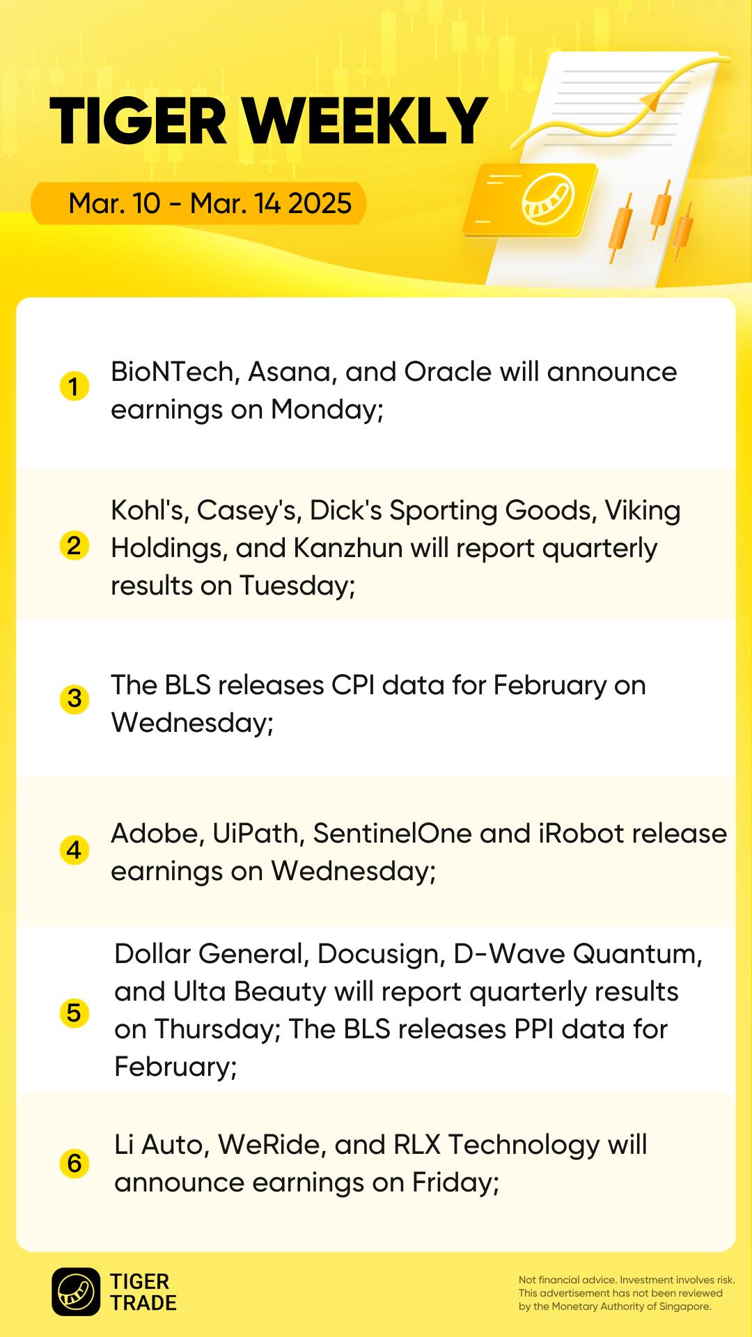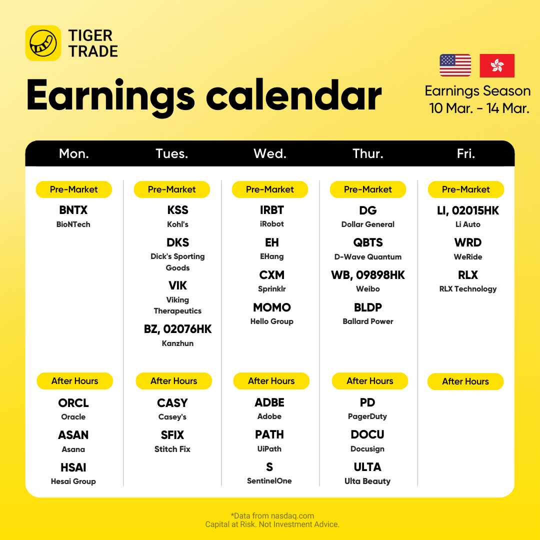 - Earnings Reports: Oracle (Monday), Adobe (Wednesday), Dollar General, and Ulta Beauty (Thursday) are reporting earnings.